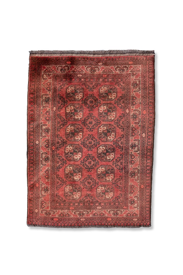 アフガニスタンのトルクメン族により織られた1枚。 元々は家紋的な意味合いで使用されていたギュルと呼ばれる紋様が連続的に配置されるクラシックなデザインながら、 シャリ感の多い短めな毛足のアフガンのトルクメンの作品が多い中でこちらは割とフカっとした作り込みです。 トルクメン族のシグネチャーとも言える赤色のカラーから力強さを感じられる一品。華やかで明るい所に置くもよし、 少し暗くなりがちなところにアクセントを加えても良いような汎用性のあるサイズ感です。 生産国・地方 アフガニスタン 部族 トルクメン族 サイズ 120 x 80cm パイル部分のみ フリンジ含まず 年代 2000年代 コンディション 使用感のあまり見られない非常に良いコンディションです。 ■ご購入の際の注意事項■ ・弊社の扱う商品は全てハンドメイドの商品であり、 特性上多少の歪み等ある場合がございます。 工房で生産される機械織りの商品などと違い 文化的側面の強い商品になりますので 完璧をお求めの方はご購入をご購入をご遠慮ください。 ・手織りにつき、完璧な四方形にはなりません。 場所により表記サイズより数cmの誤差が 生じる場合がございます。 ・お手元に届いてすぐにお使い頂けるよう 現地での洗浄クリーニング、弊社でのバキューム作業は 行っておりますが、砂漠国で使用された商品につき 取り切れない微塵や細かな砂が混入する場合ございます。 ・デッドストック未使用品の表記のアイテムに関しても、 保存状態によって細かな汚れやダメージが ある場合ございます。 ビンテージ商品にご理解頂いた上での ご購入をお願い致します。 185